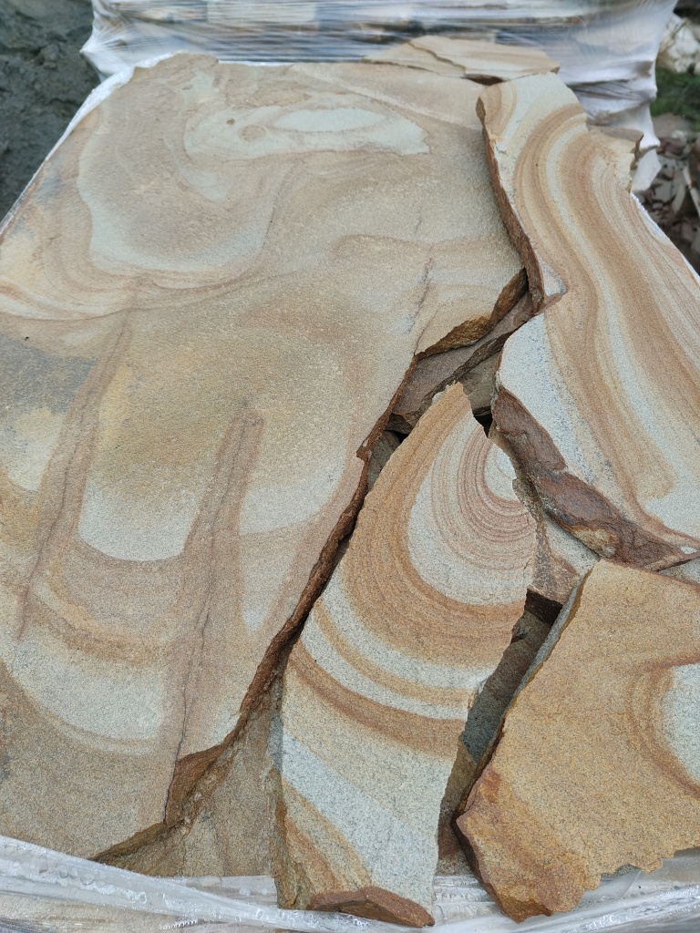 Песчаник жёлтый с разводами для мощения дорожек 30-35 мм